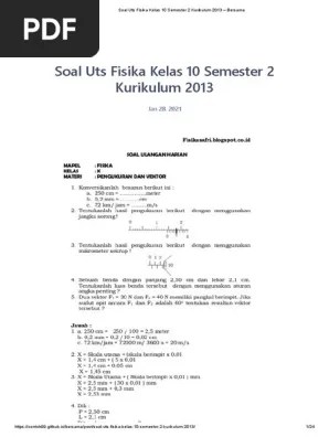 Soal dan jawaban fisika kelas 10 semester 2 kurikulum 2013.